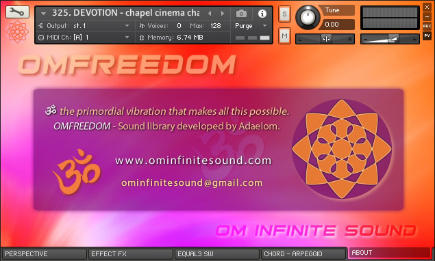 ॐ OMFREEDOM is a KONTAKT library, specially designed acoustically and digitally with (8) amazing instruments to inspire and recreate great compositions. Samples with great sound quality and light and fast loading, allow to add a greater number of instruments without consuming too many resources. With an intuitive and easy-to-use interface, it has the necessary tools for musicians, whether they are experts or beginners, so they can customize instruments with great sounds.